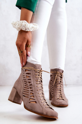Botki Zamszowe Ażurowe Wiązane Beżowe Nicole 2696
