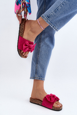 Klapki Damskie Korkowa Platforma Kokarda Fuksja Tarena CK273P