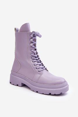 Workery Botki Damskie Ekoskóra Fioletowe Irande MP326