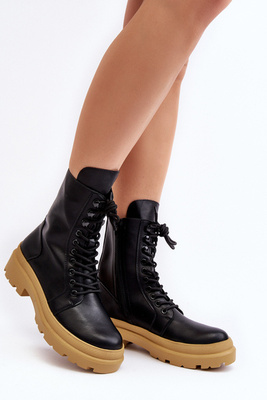 Trapery Botki Damskie Gruba Podeszwa Czarne Narelona 6602