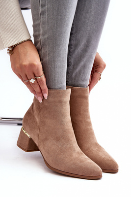 Botki Damskie Słupek Ozdoba Zamsz Beżowe Menoria DA108P