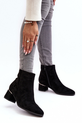 Botki Damskie Zamsz Obcas Czarne Mebassa 23BT35-6420