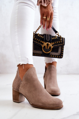 Botki Zamszowe Damskie Ażurowe Beżowe Lemar