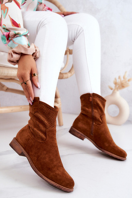 Botki Zamszowe Damskie Ażurowe Camel Lemar