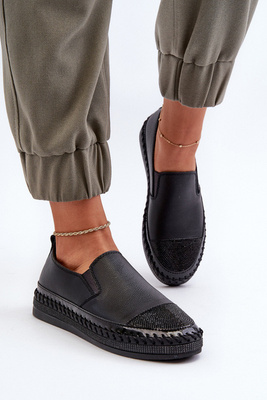 Damskie Mokasyny Skóra Ozdobny Pasek Czarne Saosin PB 247