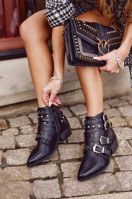 Damskie Botki Na Słupku z Ćwiekami Czarne Olivia