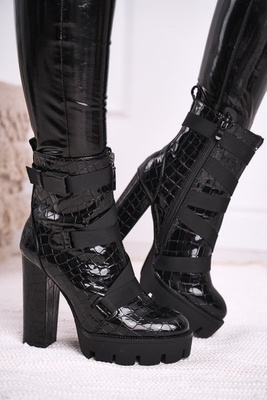 Botki Damskie z paskiem Lakierowane Czarne Joyce