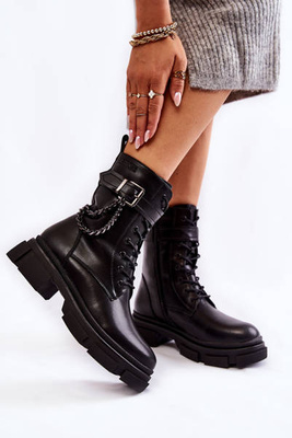 Botki Glany Skóra Ocieplane Czarne Big Star KK274486