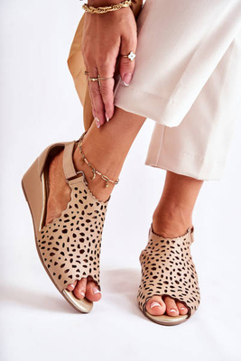 Sandały Skóra Ażurowe Koturn Beżowe Sellena