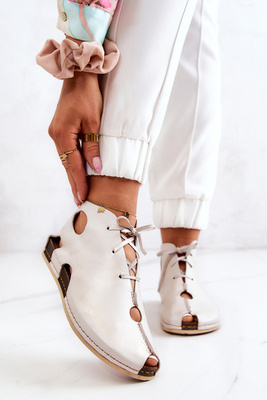 Skórzane Ażurowe Sandały Lewski Perłowe 3049 Białe