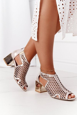 Skórzane Sandały Na Obcasie Maciejka 04509-45 Beżowo-Złote