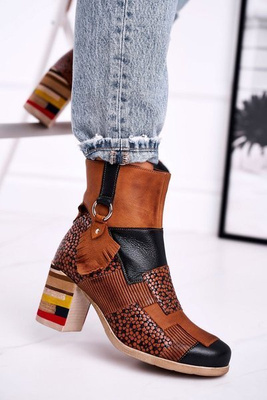Botki Damskie Na Słupku Maciejka Skóra Rude 04812-29