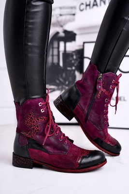 Botki Damskie Skórzane Ocieplane Maciejka Fioletowe 04625-23
