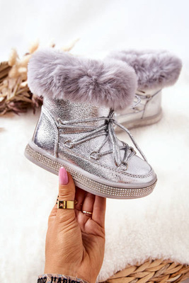 Children's Snow Boots Insulated With Fur With Ears Grey Bunny