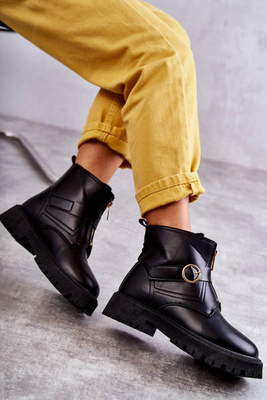 Leather Warm Boots With Zipper Black Verina