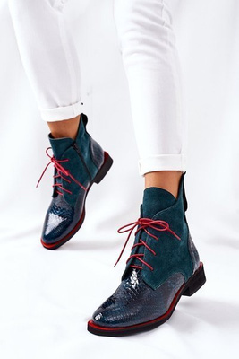 Leather Boots With A Crocodile Pattern Green Cheyenne