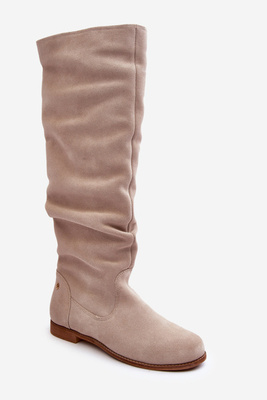 Women's Suede Boots Over the Knee Beige Lewski 3367