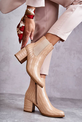 Women's Boots On Chunky Heels With A Zipper Beige Carrera