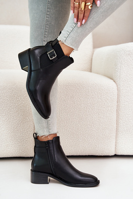 Womens Ankle Boots With Low Heel And Gold Buckle Black Vomera