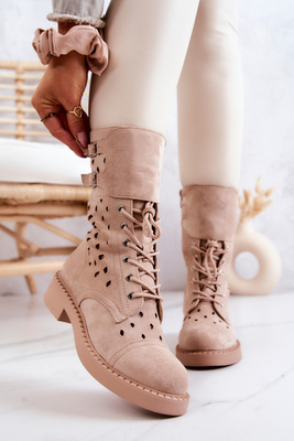 Suede Openwork Cowboy Boots Light Beige Helloni