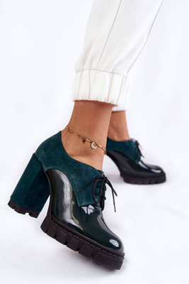 Fashionable suede and lacquered boots on the platform Green Carisa