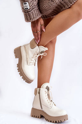 Leather, insulated boots with a zipper with pearls beige Raiso