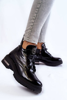 Zazoo 60309 Women's Patent Ankle Boots With Flat Heel Black