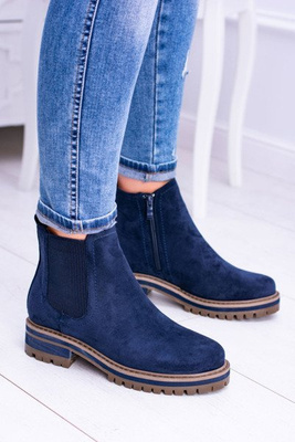 Navy Blue Women's Flat Heel Gravis Stiletto Boots