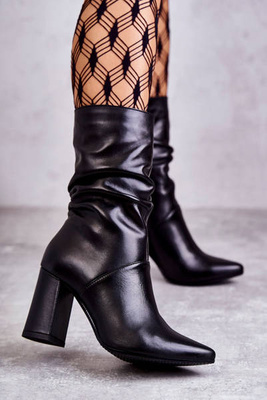 Leather Boots On High Heels With A Decorative Zipper Black Rosita
