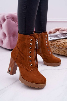 Women's Heeled Boots Spring Leather Suede Brown Nicole 2430