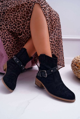 Women's Flat Heeled Cowboy Boots with Buckle Black Ewell
