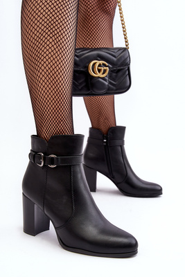 Women's Leather Ankle Boots with Decorative Black Lobb