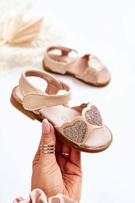 Children's Leather Sandals Brocade Hearts Beige Luisa