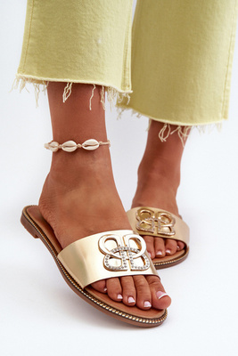 Women's Sandals with Eco Leather Decoration on Flat Heel Golden Sadria