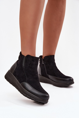 Leather Suede Ankle Boots On Platform Warm Black 06565-01