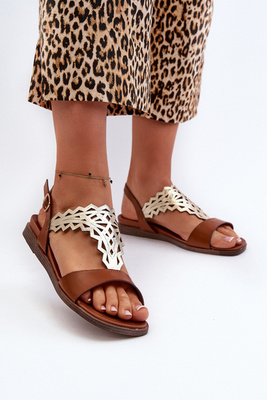 Women's sandals with gold decoration eco suede S.Barski KV27-059 brown