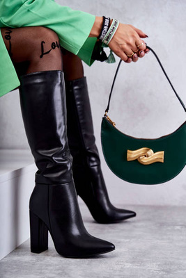 Classic Leather Boots On Heel Black Tressa