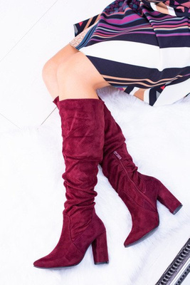 Women's Pointed Heeled Suede Boots Maroon Nightcall