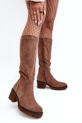Classic Suede Heel Boots Dark beige Tressa