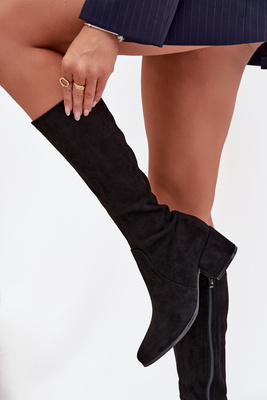 Eco Suede Knee-High Boots With Block Heel Black Batirae
