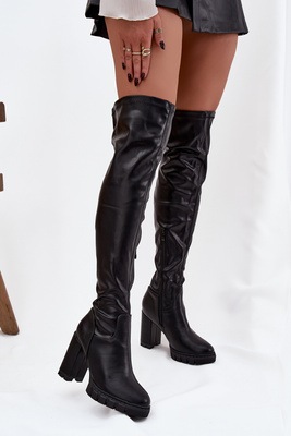 Women's Knee-high Boots on Block Heel Made of Eco Suede Black Zaretta