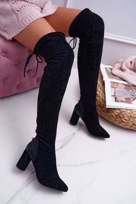 Black Suede Over-the-Knee Boots Musketeers Studs Almo