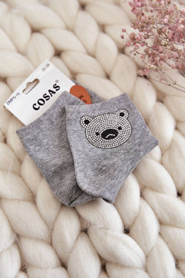 Women's cotton socks with a golden bear grey
