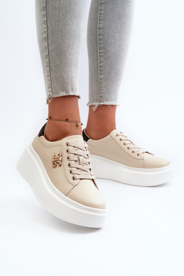 Beige Women's Leather Platform Sneakers Pernalia