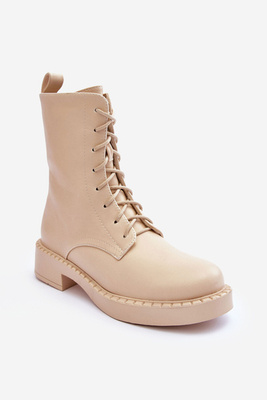Leather Ankle Boots with Flat Heel Beige Diominna