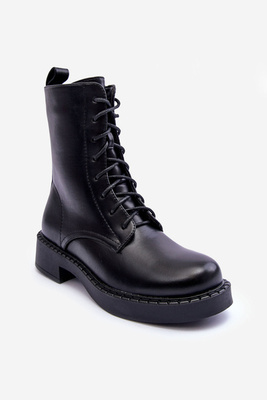 Leather Ankle Boots on a Flat Heel Black Diominna
