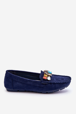 Women's Suede Loafers With Crystals navy blue Lucille