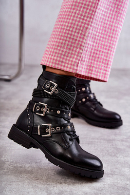 Warm Suede Boots Workers Tied Black-Red Pierro