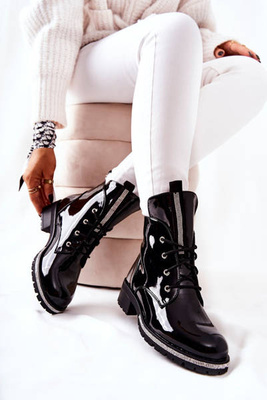 Animal Pattern Lace-up Booties Monnari 0990-020 Black