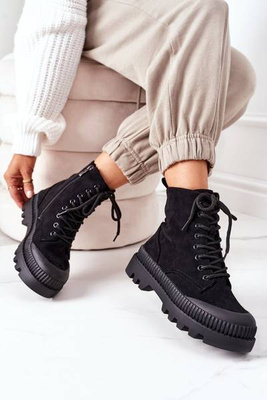 Insulated Boots With Metal Pearls, Studs And A Ribbon Black Perla